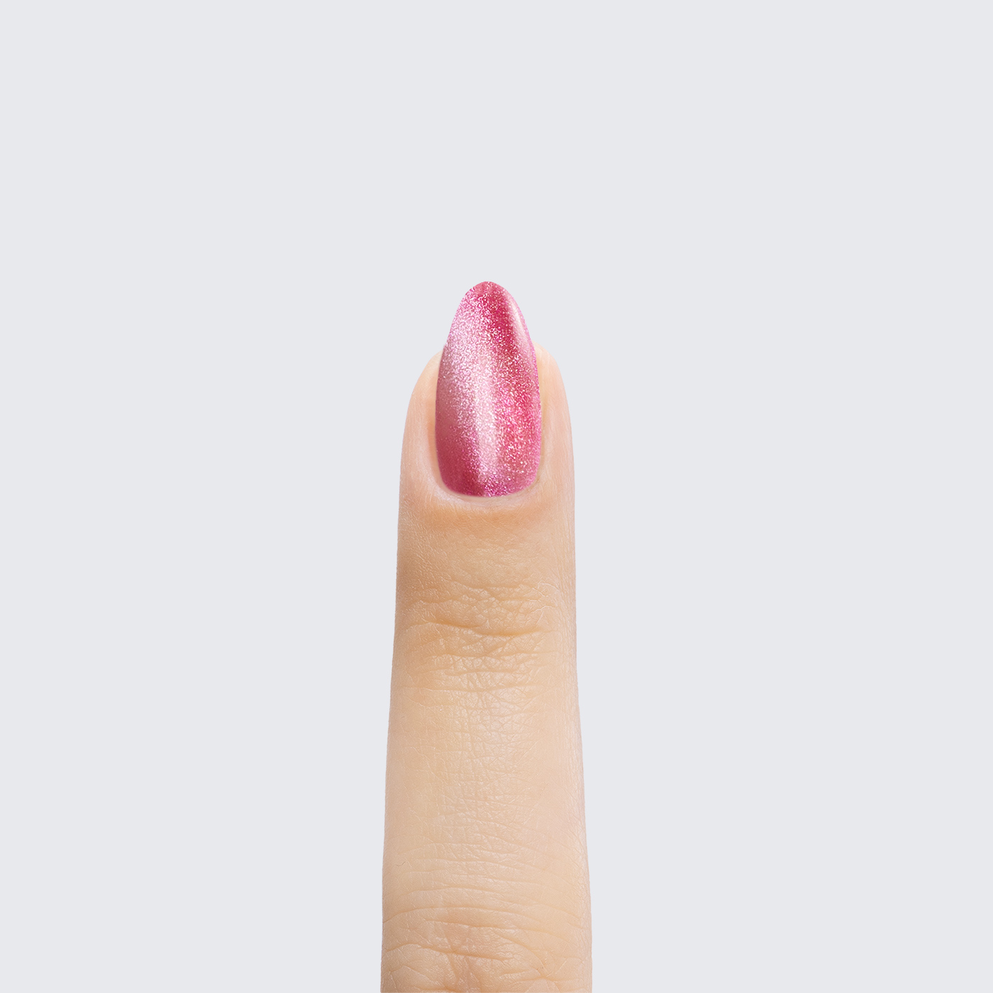 Deep magenta. Medium-dark. Pale pink magnetic shimmer. Opaque. Warm undertone.